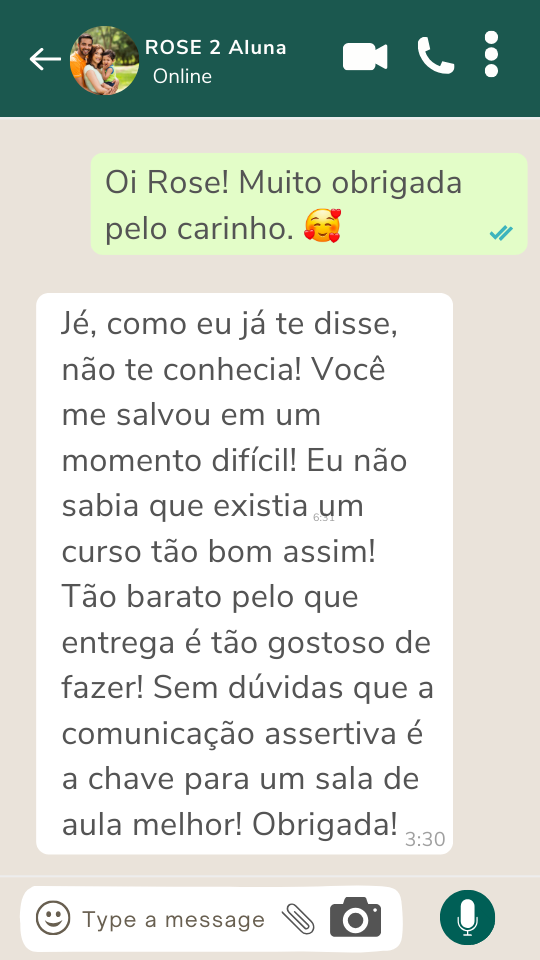 Por mais que nos comuniquemos o dia todo, muitas vezes não sabemos resolver conflitos até ficamos mais bravas quando conversamos com os alunos. Esse curso é para você professora que quer usar a voz que é a sua melhor ferramenta como aliada! Não perca sua voz (e nem sua saúde mental) por não saber se comunicar.